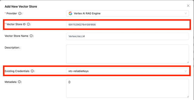 - Enter your Vertex AI RAG Engine ID in the "Vector Store ID" field